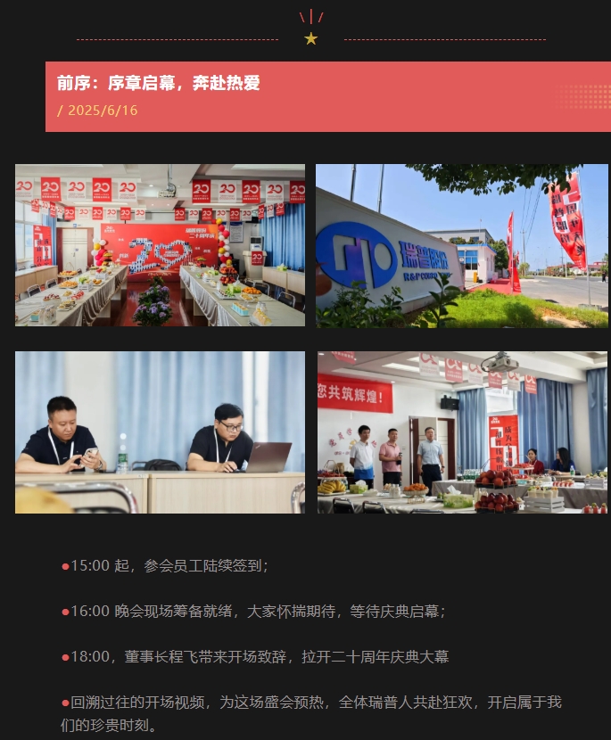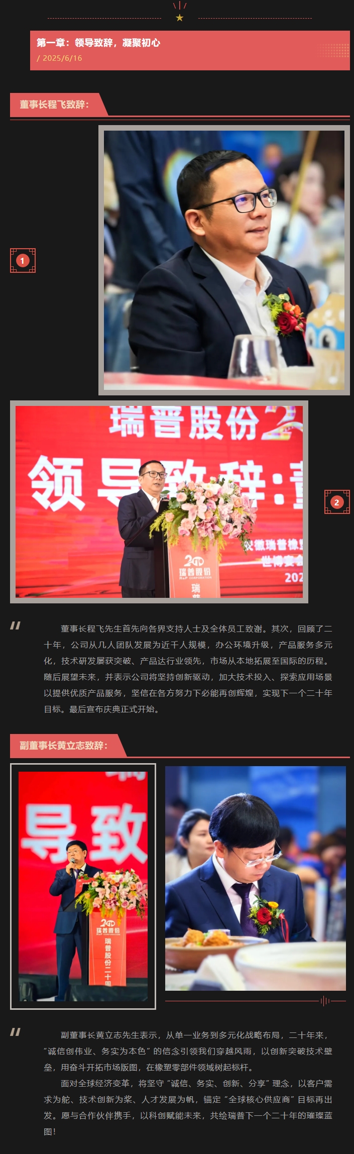 二十載櫛風沐雨,二十載砥礪前行。值此安徽瑞普橡塑科技股份有限公司成立二十周年之際,我們滿懷感恩與喜悅,誠邀您撥冗出席二十周年慶典活動,共同見證這一榮耀時刻,共敘情誼,共謀未來!